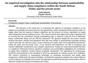 The objectives of the study were to comprehend the influence of regulatory compliance on the adoption of sustainable procurement practices by organisations, whilst examining whether